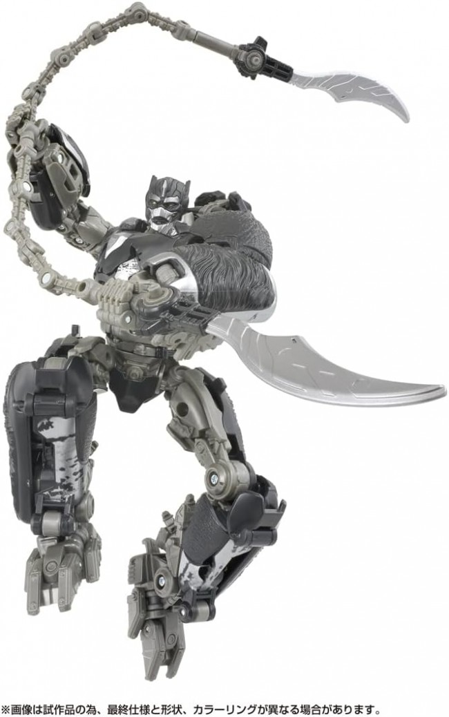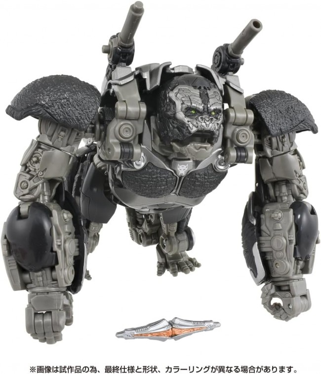 Action Figures (Animation/Science Fiction Characters) Popular characters from past movies are now available in a series of new designs! This is the perfect series for your collection to recreate and enjoy the world of the movies. The Optimus Primal from the seventh Hollywood movie "Transformers: Beast Awakening" has been recreated. The leader of the Maximals, he transforms from a giant silverback gorilla into battle robot mode. To protect the Transwarp Key entrusted to him, he has been hiding on Earth in cooperation with the human race. Although he has a kind-hearted personality, he displays his power without regret in battle. In the decisive battle against Terracon, he was the leader of Maximals and issued a code to his comrades to transform into battle mode. A huge axe and twin swords with chains are included, which can be used in both robot and beast modes. ◆Set Contents Optimus Primal body (1), Weapon (sword) (2), Weapon (chain) (2), Weapon (axe) (1), Transwarp key (1), Instruction manual (1) (C) TOMY.(C) 2024 Paramount Pictures Corporation. All Rights Reserved. TM & (R)denote Japan Trademarks.