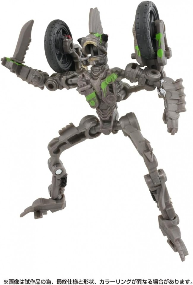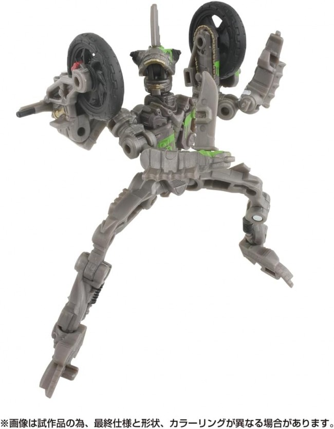 Action Figures (Animation/Science Fiction Characters) Popular characters from past movies are now available in a series of new designs! This is the perfect series for your collection to recreate and enjoy the world of the movies. Reproduction of the Decepticon Mohawk from the fifth Hollywood movie "Transformers: The Last Knight King". Transforms into a motorcycle. A knife wielder loyal to Megatron, he was imprisoned by TRF (Transformers Reaction Force) as a vicious Decepticon, but was released by Megatron who made a deal with them and joined the Autobot attack. When running in vehicle mode, like Arcee and others, it can display holographic images of its passengers. A small knife is included. ◆Set Contents Mohawk (1), Weapon (knife) (1), Instruction manual (1) (C) TOMY.(C) 2024 Paramount Pictures Corporation. All Rights Reserved. TM & (R)denote Japan Trademarks.