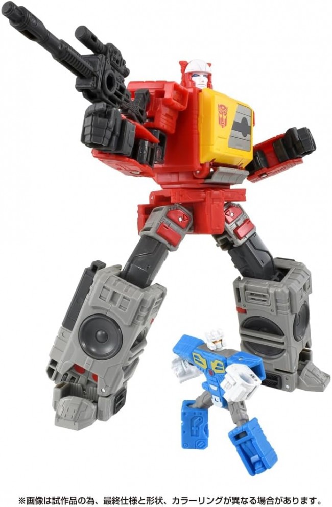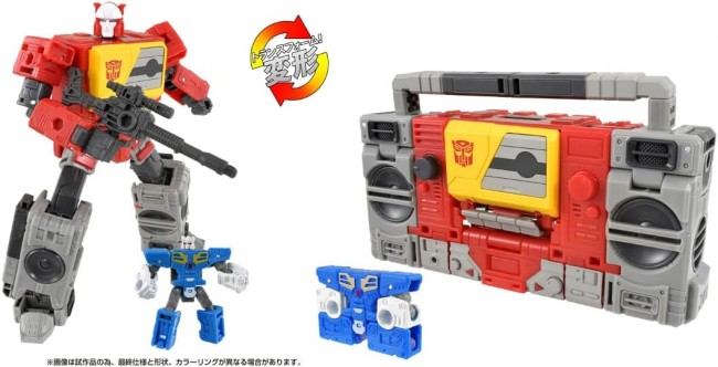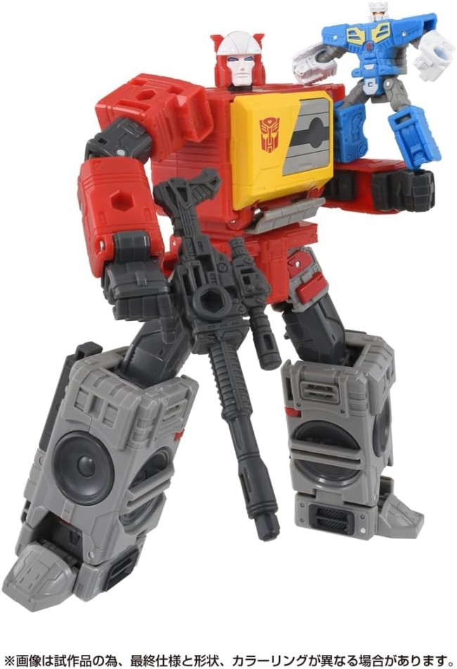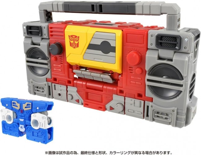 Action Figures (Animation/Science Fiction Characters) Popular characters from past movies are now available in a series of new designs! This is the perfect series for your collection to recreate and enjoy the world of the movies. Blaster, the Autobot communicator who transforms into a boombox, and Eject, the Autobot warden who transforms into a cassette tape, are both included. Blaster responded to a Decepticon raid on an Autobot base and relayed the crisis to his comrades via emergency communication. Specializing in sonic attacks, he played special music to repel the enemy. Eject confronted the cassetrons who intercepted the emergency communication. The blaster can store the transformed Eject in the chest cassette deck. ◆Set Contents Blaster (1), Eject (1), Weapon (gun) (1), Instruction Manual (1) (C) TOMY