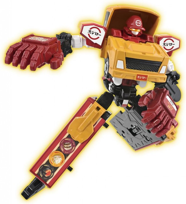 Food Braver Sushiro Ad Truck" from "Tomica Heroes Job Braver Special Combination Robot", a hero born from Tomica! Armor Tomica "Sushiro Ad Truck" combines with Sushi Jobroid to become Sushiro's robot "Food Braver Sushiro Ad Truck"! Protect the city with the separately sold Job Laver and other Job Lavers! The Sushi Jobroid can be combined with the armor micas included with other products in the Job Reaver series. Weapon parts are included. Armor Tomica (Sushiro Ad Truck) upper body parts (1), Armor Tomica (Sushiro Ad Truck) lower body parts (right) (1), Armor Tomica (Sushiro Ad Truck) lower body parts (left) (1), Armor Tomica (Sushiro Ad Truck) cover parts (1), O Sushi Jobroid(1),Weapon(right)(1),Weapon(left)(1),Label(1),Instruction Manual(1) (C) TOMY (C) SUSHIRO