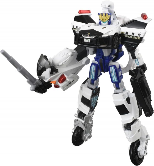 From “Special Combination Robot Job Braver” starting July 6, “Police Unite Vehicle Hakubai”, a new vehicle that combines with Police Braver, is now available as a set! The “Unite Police Braver” will be completed with this set! Armor Vehicle “NISSAN NISSAN GT-R Patrol Car” combines with Police Jobroid to become Police Robot “Police Braver NISSAN NISSAN GT-R Patrol Car”! And Police Braver will merge with “Police Unite Vehicle Hakubai” to become a police robot “Unite Police Braver Nissan NISSAN GT-R Patrol Car Hakubai Armor”! Combine with Job Reavers like in the anime! Protect the city with the Job Reavers (sold separately)! The Police Unite Vehicle can be combined with TJB01, TJB02, and TJB03, which will be released in June 2025. Set includes: Armor Vehicle (NISSAN NISSAN GT-R Patrol Car) upper body parts (1), Armor Vehicle (NISSAN NISSAN GT-R Patrol Car) lower body parts (right) (1), Armor Vehicle (NISSAN NISSAN GT-R Patrol Car) lower body parts (left) (1), Armor Vehicle (NISSAN NISSAN GT-R Patrol Car) lower body parts (left) (1) Police jobroid (1),Handcuff type weapon (1),Gun type weapon (1),Unite vehicle (motorcycle) arm parts (1),Unite vehicle (motorcycle) leg parts (left) (1),Unite vehicle (motorcycle) leg parts (right) (1),Baton type weapon (1),Seal (1),Instruction manual (1) (C) TOMY