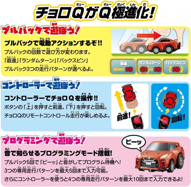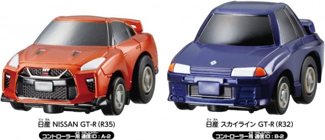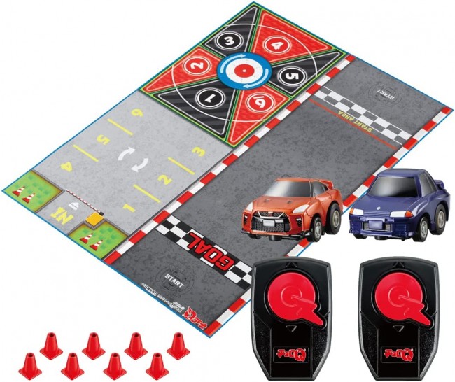 Collectible Toy (Passenger Car - Completed) A set that includes two Choro-Qs, a controller, pylon, and play map! Pull-back and play! Challenge with the controller! Play with Choro-Q using the big B2 size play map! Choro-Q NISSAN GT-R (R35) [Communication ID for controller: A-2 ChoroQ NISSAN SKYLINE GT-R (R32) [Communication ID for controller: B-2 Controller (2 pcs): with test batteries (4 x LR44 button batteries) ChoroQ (2 units): with test batteries (4 LR44 button batteries) Contents Choro-Q: NISSAN GT-R (R35) (1), Choro-Q: NISSAN SKYLINE GT-R (R32) (1), Controller (2), Pylon (8), Play Map (1), Instruction Manual (1) (C) TOMY (From TOMY website)