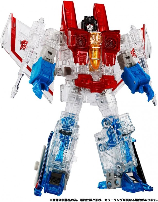 Action Figure (Animation/Science Fiction Character) The popular Beast character, who has been the talk of the town since the selection broadcast of the anime and his participation in the Beast Warrior movie released in the summer of 2023, has been re-released in a premium finish specification. They will be released sequentially in a VS set box with coloring more in line with the CG animated film and images of rival characters in confrontation, bringing back memories of that time. As a bonus stage in the BWVS series, the Destron Air Staff "Starscream," which transforms into a jet plane, appears in a standard special clear molded color as "Ghost Starscream," a ghost version that appeared in Beast Wars Episode 21. The "Waspiter" possessed by the "Ghost Starscream" is reproduced as the "Horned Waspiter" in a dark color to resemble the possessed state, and the Destron emblem on its head is reproduced in a premium finish to recreate the image from the main anime series. In the closed box package. Inside the closed box package is a reversible inner sheet that gives the image of a box from the original showdown set, and two character cards are also included. ◆Set Contents Ghost Starscream (1), Horned Wasp Peter (1), Character cards (2), Instruction manual (1) (C) TOMY