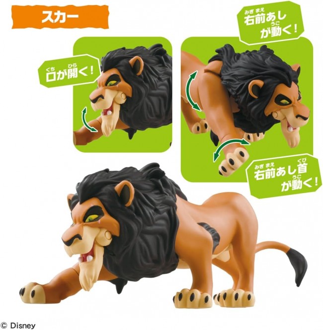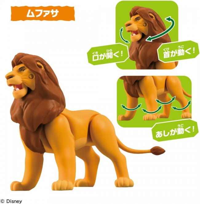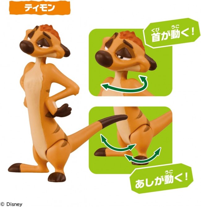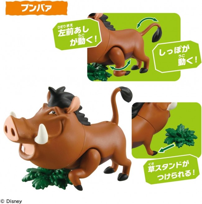 A set of moveable figures from the animated “The Lion King” is now available at Ania! This is a set of 5 playable figures of Simba, Mufasa, Scar, Timon, and Pumbaa as children from the “The Lion King” cartoon. Simba (child) has a movable neck and forelegs. Mufasa's mouth, neck and legs move. Scar's mouth, right front foot, right front foot and neck move. Timon moves his neck and front legs. Pumbaa's left foreleg and tail move. Includes grass-shaped stand for Pumbaa, rock-shaped scene parts, and diorama play sheet to assemble and play with. Ania” is a series of palm-sized animal figures that can be moved and played with. The “Ania” series is a series of palm-sized animal figures that can be moved and played with, and can be enjoyed as a “3D animal picture book” to stimulate children's intellectual curiosity to know the characteristics and types of animals. The appeal of this series is its movable action, realistic modeling and painting, and palm-size for easy play. Contents] Simba (child) (1), Mufasa (1), Scar (1), Pumbaa (1), Timon (1), grass stand parts (1), scenery parts (1), diorama play sheet (1) (C) Disney
