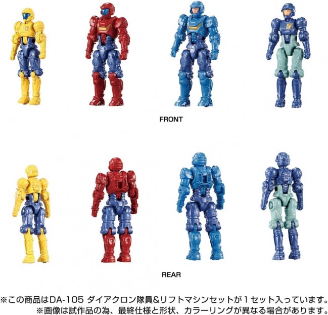 Action Figure (Anime/Science Fiction Character) All hands on deck, let the march begin! The Diaclone crew & lift machine are now available as a set! The true star of the Diaclone series, the adds even more excitement to your situation play! . The figure has a total of 10 movable joints, including the movable head, and the soles of the feet are equipped with tiny neodymium magnets, allowing the figure to stand on a steel plate or other surface. Includes two each of Diaclone crew members Ver. 2.0 and Diaclone female crew members. The included lift machine corresponds to the small size maintenance & boarding play by expansion of the telescopic lift. ◆Set Contents Diaclone Crew Ver.2.0 (2), Diaclone Female Crew (2), Lift Car (1), Lift Arm (1), Steel Sheet (1), Instruction Manual (1) (C) TOMY