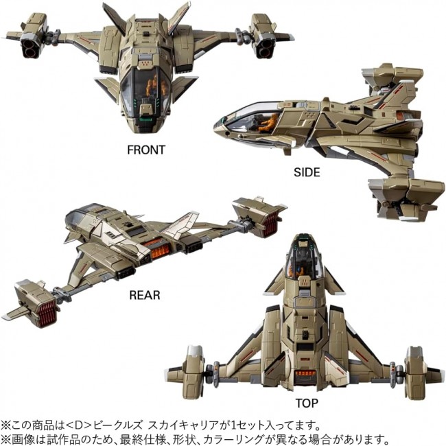 Action Figure (Anime/SF Character) Vehicles Sky Carrier The Sky Carrier takes off to support combat operations from the air! The Sky Carrier appears to support combat operations from the air. In addition to flying solo, it can carry cargo such as load chambers (sold separately) and machines from the Tactical Mover series (sold separately). It is equipped with a switch on its back to release the cargo. Evokes battle situations where cargo is dropped at target locations. It can suspend up to three load chambers individually and is equipped with a linking mechanism for connecting Sky Carriers. Includes one missile part and one Diaclone Crew Member/Ver. 2.0. Contents Main unit (1), Right booster (1), Left booster (1), Suspension joint A (1), Suspension joint B (1), Connection joint (2), Diaclone crew member/Ver. 2.0 (1), Runner parts (1), Instruction manual (1), Brochure (1) (C) TOMY