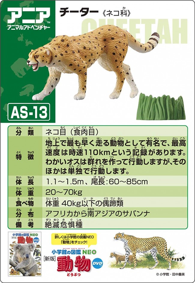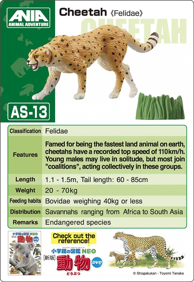 Cheetah (1), grass (1), pictorial card (Japanese version) (1), pictorial card (English version) (1)