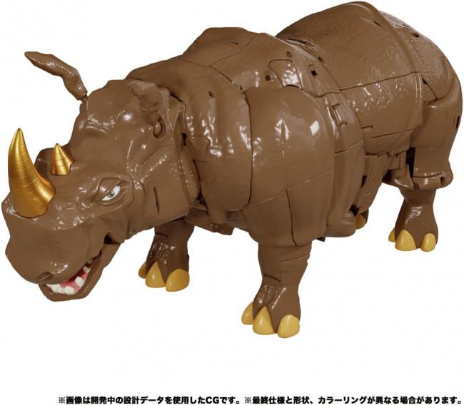 Action figures (anime/SF characters) Beast Wars' Autobot/land defense warrior Rhinox appears in Transformers Masterpiece! Rhinox, who played an active role in the TVCG animation "Beast Wars Super Lifeform Transformers", has been faithfully recreated in three-dimensional form based on the settings in the movie. Completely transforms from beast mode (rhinoceros) to robot. The size matches the series characters, and you can recreate the action scenes from the play by placing them side by side with the Beast Wars characters that are already on sale. Two Gatling hammers are included, and it is possible to take the impressive two-handed shooting pose in the movie. One of the Gatling hammers can be stored inside Beast Mode, just like the toys from the anime. In addition, the device used to search for Optimus Prime's spark in the movie is included, as well as a spark and a face (scream). By using the adapter for Optimus Prime (Beast Wars), you can recreate the scene of riding Rhinox in beast mode. ◆Set contents◆ Rhinox body (1), Gatling hammer (*1 is stored in the body) (2), Device (1), Spark (1), Face (scream) (1), Optimus (Beast Wars) adapter (1), Character card (1), Instruction manual (1) (C)TOMY