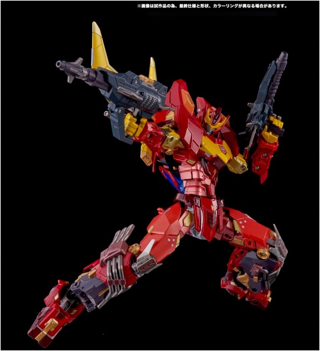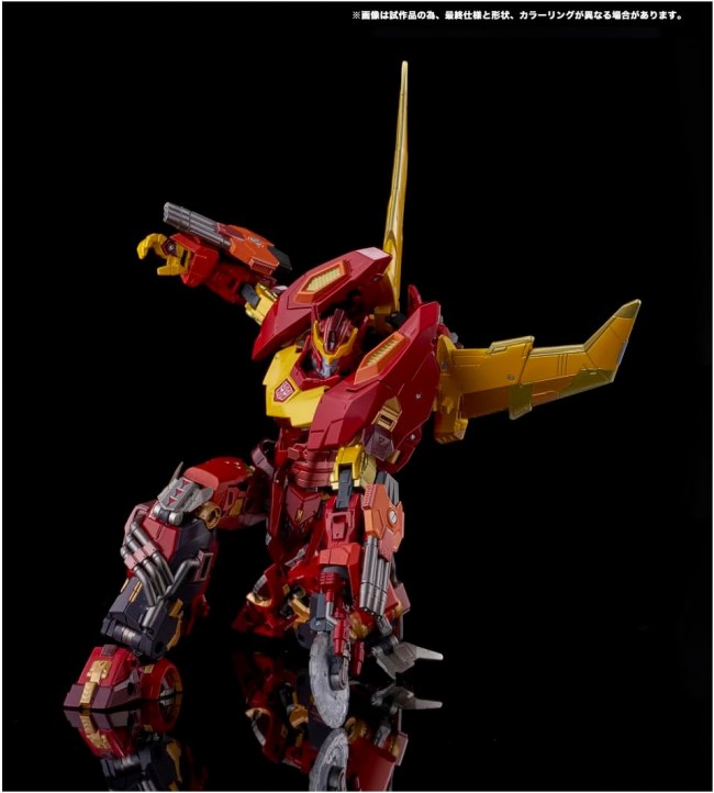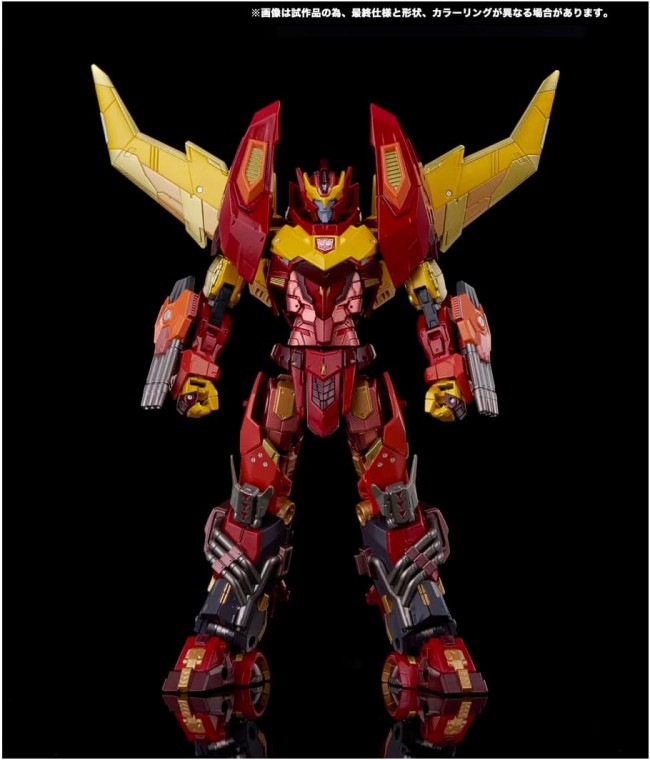 Action Figures (Animation/Science Fiction Characters) Refined, Transformable, Movable A new interpretation of Transformers, starting with the Steel Machine God ! Stylish modeling and movable! Alloy is used for each part to achieve complete deformation! High detail, high-end die-cast figure series "Adamas Machina" is now available. The first Transformers figure is Rodimus, the knight who played an active role in Transformers The Movie and other movies. In collaboration with Flame Toys, we have reproduced the styling of both forms, while achieving complete transformation. The high-end figure series "Steel Machine God (Adamas Machina)" uses high detail and die-castings. The first Transformers figure, Rodimus, was created in collaboration with Flame Toys to recreate the sophisticated styling of both the robot and vehicle forms, while incorporating Takara Tomy's deformation technology to achieve full deformation. Inspired by the comic book version, the robot mode reproduces a stylish form in collaboration with Flame Toys. At first glance, it is hard to believe that the figure is deformable, as it has the appearance of a non-transformable figure. The body of the Robot Mode is approximately 230mm tall, and die-cast parts are used throughout to create a sense of weight and luxury. The entire body is equipped with movable joints, allowing the figure to be displayed in dynamic poses. The fully developed transformation mechanism allows intuitive transformation in a few steps, and the vehicle mode is based on a design originally created for this product based on a comic book depiction. The two pairs of photon lasers included with the figure can be used as two hand-held pistols or combined to form a large gun, the Photon Eliminator. The retractable wrists can be removed and replaced to create a Sawblade deployed state. A hand-held communicator, which was often depicted in the comics, is also included. All accessories can be attached to the main body of the figure in both forms without being left over. Product Contents Rodimus main body (1), Photon Laser α (1), Photon Laser β (1), Saw Blade (1), Communicator (1), Instruction Manual (1) Height: approx. 230mm (including wing) Scale: not to scale Batteries are not used (C) TOMY (From TOMY)