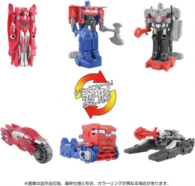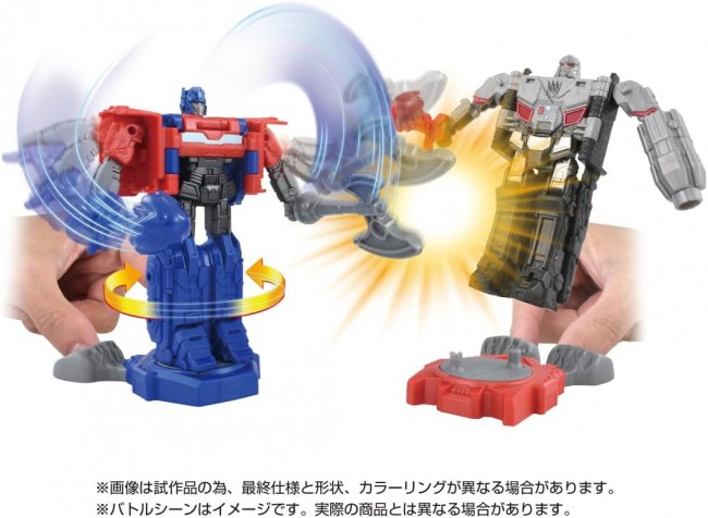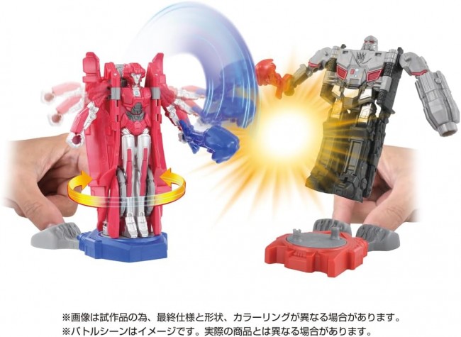 Characters from the new full CG animated movie “Transformers/ONE” are now available as toys! Swing battle on a pedestal! Cybertron Rush Battle Series! Optimus Prime, Megatron and Elita-1 from “Transformers: One” are now available in Cybertron Rush Battle! Not only can they transform from vehicles to robots, but they can also be set on a special pedestal with weapons in robot mode and controlled with a finger to spin around and wield their weapons as they battle! You will want to play with this product over and over again. Includes weapons and pedestals that can be equipped to all characters. Can be combined with other Cybertron Rush Battle series figures. Contents] Optimus Prime (1), Megatron (1), Elita-1 (1), pedestal (2), weapons (4) (C) TOMY. (C) 2024 Paramount Pictures Corporation. All Rights Reserved. TM & (R) denote Japan Trademarks.