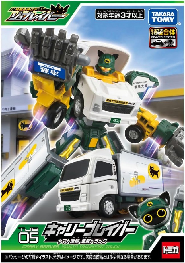 A new Jobraiver, “Carrybraver Yamato Transport Delivery Truck,” has arrived from “Special Edition Combination Robot Jobraiver”! The armor vehicle “Yamato Transport Delivery Truck” combines with the Takkyubin Jobloid to become Yamato Transport's robot, “Carrybraver Yamato Transport Delivery Truck”! Jobraver combines with a satisfying click, just like in the anime! Join forces with other Jobraver models (sold separately) to protect the city! ? Weapon parts are included. 【Set Contents】 Armor Vehicle (Yamato Transport Delivery Truck) Upper Body Part (1), Armor Vehicle (Yamato Transport Delivery Truck) Lower Body Part (Right) (1), Armor Vehicle (Yamato Transport Delivery Truck) Lower Body Parts (Left) (1), Armor Vehicle (Yamato Transport Delivery Truck) Cover Parts (1), Takkyubin Jobroyd (1), Glove-Type Weapon (Right) (1), Glove-Type Weapon (Left) (1), Sticker (1), Instruction Manual (1) (C) TOMY (R)YAMATO HOLDINGS.CO.,LTD “Kuroneko Mark and Yamato Transport Logo” are registered trademarks of Yamato Holdings Co., Ltd.