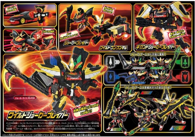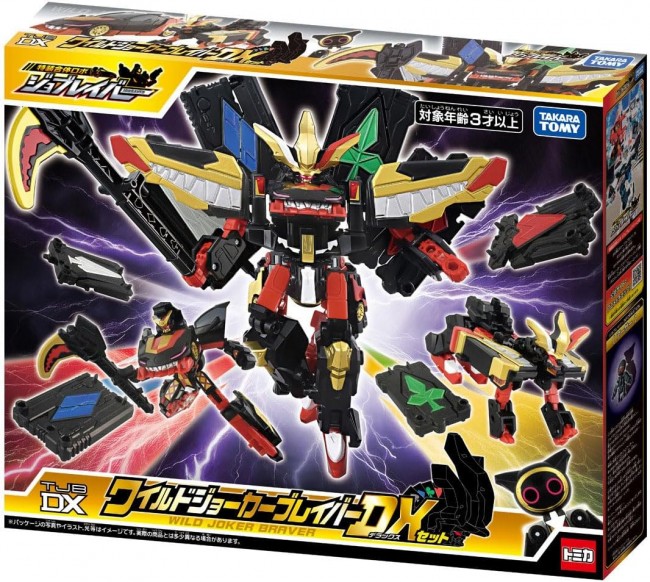 The Wild Joker Braver emerges from the Special Combination Robot Joker Braver! The Gigant Joker Braver powers up even more by equipping its trump-shaped weapons (Spades/Diamonds/Clubs/Hearts)!! It transforms into the Wild Joker Braver!! ● The Jobloid “Joker” and “Joker Vehicle” perform a special combination to become the Joker Braver! ●Joker Braver and Buddyroid “Wild Wanwan Maru” perform a super special combination to become “Giganto Joker Braver”! ・Weapon parts are included. 【Set Contents】Armor Vehicle (Joker Vehicle) Upper Body Parts (1), Armor Vehicle (Joker Vehicle) Lower Body Parts (Right) (1), Armor Vehicle (Joker Vehicle) Lower Body Parts (Left) (1), Jobloid Joker (1), Scythe-Shaped Weapon (1), Buddyroid (Wild Wanwan Maru) Main Body (1), Buddyroid (Wild Wanwan Maru) Head Parts (1), Buddyroid (Wild Wanwan Maru) Shoulder Armor A (1), Buddyroid (Wild Wanwan Maru) Shoulder Armor B (1), Wild Visor (1), Trump Card Weapon (Spades) (1), Trump Card Weapon (Diamonds) (1), Trump Card Weapon (Hearts) (1), Trump Card Weapon (Clubs) (1), Joint Parts (1), Sticker (1), Instruction Manual (1) (C) TOMY