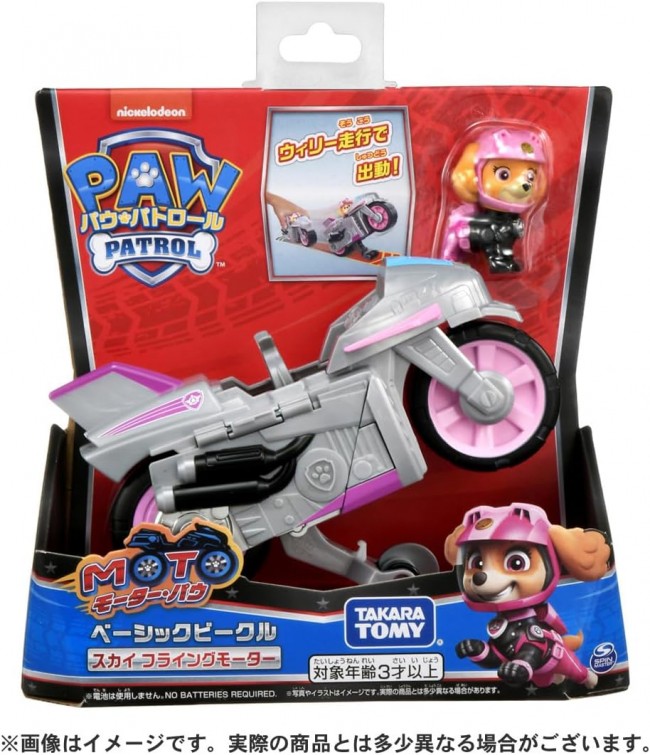 Pow! Solve any trouble with Pow! Pow Patrol is on the move! Skye's flying motor from the animated series “Motor Pow” is here! Pull it back to make it do a wheelie! You can put your figure on it! You can also move the wing to play! Contents】Sky Flying Motor (1),Sky Figure (1) (C)2025 Spin Master Ltd. PAW PATROL and all related titles, logos, characters; and SPIN MASTER logo are trademarks of Spin Master Ltd. Nickelodeon and all related titles and logos are trademarks of Viacom International Inc.