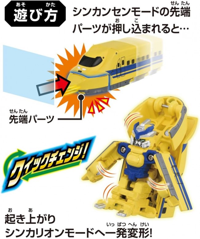Collectible Toys (Sci-Fi/Animation Character, Completed) Doctor Yellow” from the TV anime ‘Shinkarion: Change the World’ is now available as part of the ‘Quick Change’ series, allowing for easy one-shot transformation! Series] appeared! Doctor Yellow] of the TV anime [Shinkarion Change the World] is now available in the [Quick Change! TV anime [Shinkarion Change the World] is now available in the [Quick Change! series, which can be easily transformed in one shot! Easy one-shot deformation! When the tip of the Shinkansen Mode is pushed in... The tip of the Shinkansen mode rises up and transforms into the Shinkarion mode in one shot! Connect them together! In Shinkansen Mode, you can connect it to other products in the Quick Change Series (sold separately)! series products sold separately! Package size: W90 x H60 x D50mm Ages: 3 and up Contents Quick Change! Doctor Yellow (1) (C)TOMY (c)Project Shinkarion, JR-HECWK/ERDA, TX (From the TOMY TOMY Mall website)