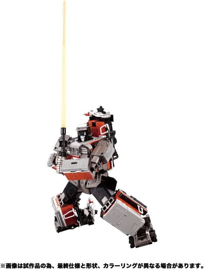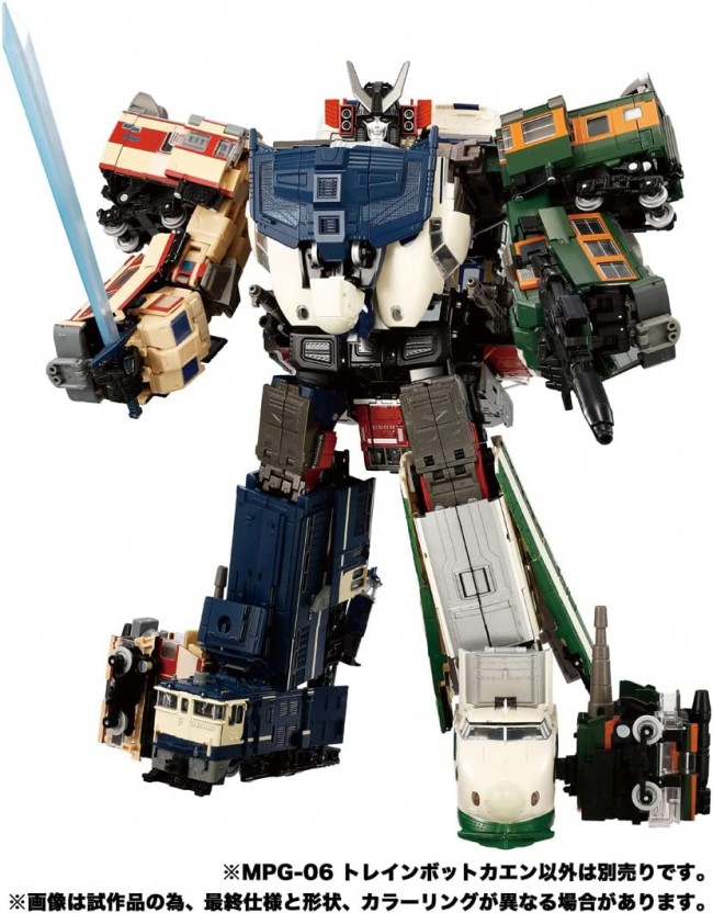 Transformers' train theme is now available as a product! Kaen, the "Trainbot" from the animated TV series "Transformers: The Headmasters", is now available as "Trainbot Kaen" from the new "MPG" series! MPG" stands for Masterpiece G, and "G" stands for GATTAI, GIANT, and GREAT! means "GREAT! This is the sixth figure from the new Transformers "MPG" series, and it completely transforms from a diesel locomotive DE10 to a robot! The fully posable version allows you to recreate the poses from the play and have fun with it. It can also be placed on the included rails for display, and comes with other weapons (power laser) and a light sword for Raiden. It also comes with a triple-change design and can transform into a waist part for Raiden! The figure can be combined with 5 other Trainbots (sold separately) to complete the "Raiden" figure. Contents] Trainbot Kaen (1), Weapon (Power Laser) (1), Light Sword for Raiden (1), Train mark for anime (1), Conventional rail (1), Joint parts (1), Joint parts for Raiden (1), Character card (1), Instruction manual (1) (C) TOMY Approved by JR Tokai (C) TOEI