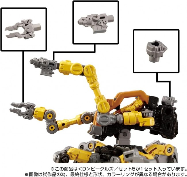Action Figures (Animation/Science Fiction Characters) Vehicles #5: New Machine! The fifth in the series features a new type of machine that functions as the cockpit for the new Road Chamber machine and container-type machine: the cab-type Bollet Module Machine. Also included are two types of "expansion joints" (optional Tactical Carrier Mounting Joint and Upper Connection Joint) that broaden the play value of the Road Chamber. Two male and one female Diaclone team members are included. ◆ Vehicles / Set 5 Set Contents ◆ Bollet module A (2), Bollet module B (1), Arm parts (right) (1), Arm parts (left) (1), Leg parts (right) (1), Leg parts (left) (1), Armored parts (2), Claw parts (2), Extension joint parts A (2), Extension joint parts B (2), Container (1) Container(1), Running Unit(2), Runner Parts(1), Diaclone Member Ver.2.0(2), Diaclone Female Member(1), Sticker(1), Brochure(1), Instruction Manual(1) (C) TOMY