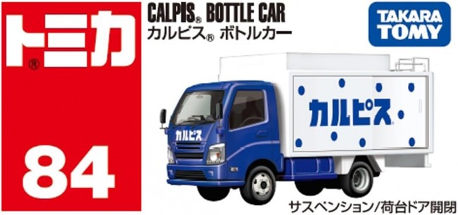 Collection Toy (Rider Vehicle / Ready-to-Play) The “Calpis Bottle Car” is now available as a Tomica! Suspension, cargo door opens/closes Contents: Tomica main unit (1) (C) TOMY (C)ASAHI SOFT DRINKS CO., LTD. ALL rights reserved. (From the Takara Tomy website)
