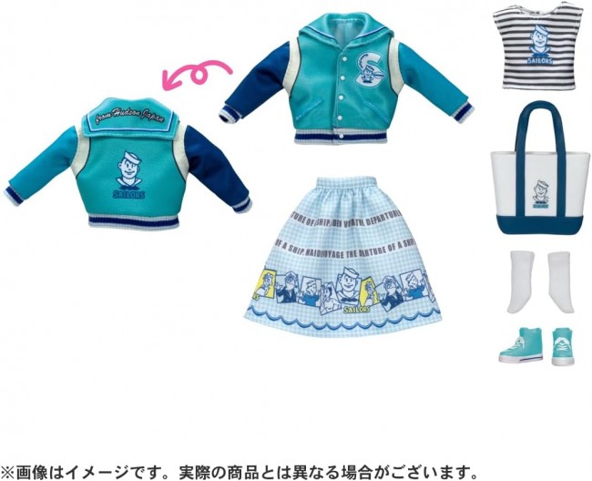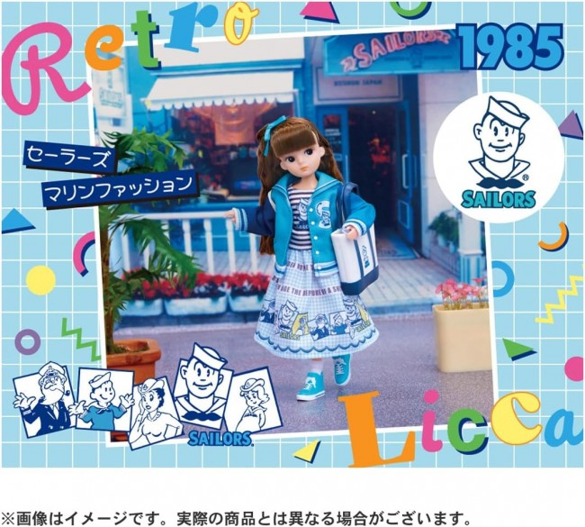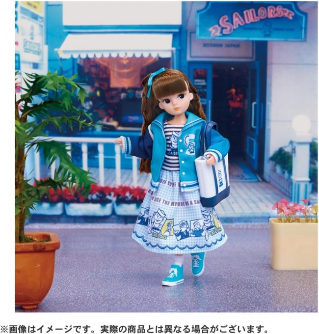 The legendary brand “Sailors” and Retro Rika have finally collaborated! Retro Rika wears a sailor-style jacket in a special color popular with Sailors, a skirt with a gingham check pattern dotted with characters, and a striped top with the Sailors logo as an inner layer, creating a marine-style outfit. Her hair is styled in a side ponytail with a mint green ribbon matching the jacket, giving her a cute look. Socks, shoes, and a Sailors-style tote bag are included. *Retro Rika is a series that inherits the face and belly button of the original “Rika-chan” from 1967 while evolving to be more poseable. *While Retro Rika dresses and shoes can be used with regular Rika-chan, the doll sizes and specifications differ, so the appearance when dressed may vary. 【Set Contents】Doll (Retro Ricca) (with dress, hair accessories, and underwear) (1), Bag (1), Shoes (1), Socks (1) (C) TOMY