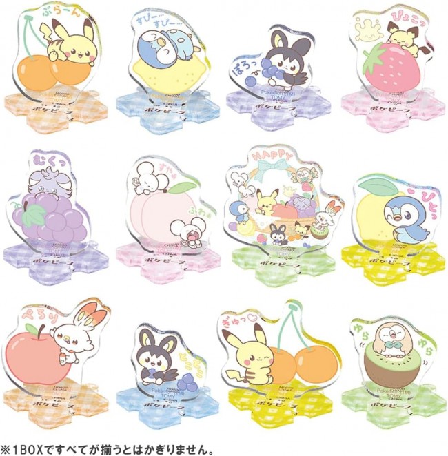 Peek into the Peaceful Lives of Pokemon! Let's assemble and connect! A little acrylic stand! The theme of Colorful Fruits is now available as a tiny acrylic stand! The small size is cute! Let's collect and connect many of them! The height is about 3~4cm. Set Contents] Acrylic (with stand) (12) (C)Pokemon. (C)Nintendo/Creatures Inc./GAME FREAK inc.