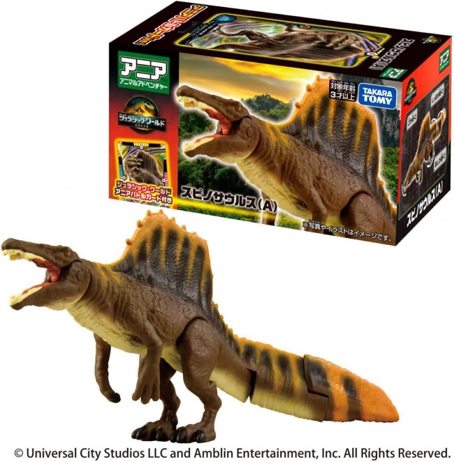 Completed Toys Ania The new dinosaurs from the Jurassic World film “Jurassic World: Resurrection Earth” are now available in the Jurassic World series with cards to battle and play with! Spinosaurus (A) has a movable mouth, legs and tail. Spinosaurus (A) has a movable mouth, legs and tail, and comes with an Ania Battle Card for battles. Ania” is a series of palm-sized animal figures that can be moved and played with. The “Ania” series is a series of palm-sized animal figures that can be moved around and played with. The appeal of this series is its movable action, realistic modeling and painting, and palm-sized design that makes it easy to play with. Package size: W133.5 x H70 x D70mm Ages: 3 and up Contents Main body (1) Ania battle card (1) (C) Universal City Studios LLC and Amblin Entertainment, Inc. (C)TOMY (From the TOMY Mall website)