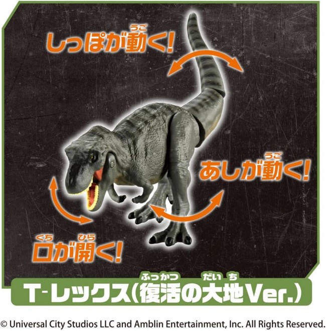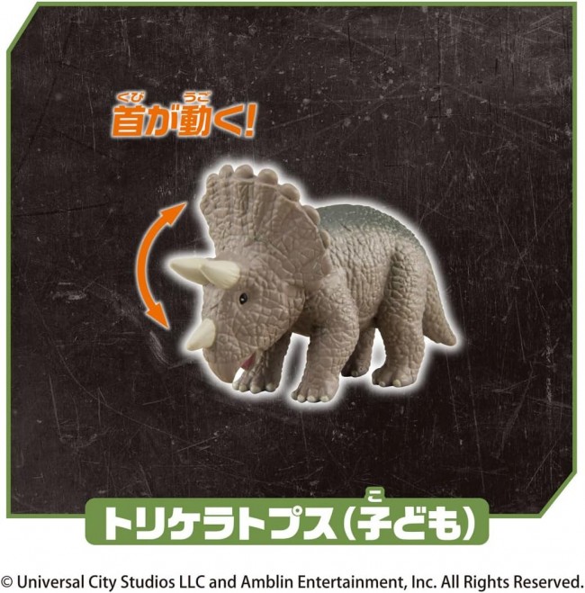 The Ania Jurassic World series now includes a set of three new dinosaur figures from the movie “Jurassic World: The Resurrected Earth”! This set includes three figures: Titanosaurus, T-Rex (Resurrection Earth Ver.), and Triceratops (child). Titanosaurus has a movable neck and tail. T-Rex (Resurrection Earth Ver.) has movable mouth, legs and tail. Triceratops (child) has a movable neck. Includes 3 Ania Battle Cards for battles. Ania” is a series of palm-sized animal figures that can be moved and played with. The “Ania” series is a series of palm-sized animal figures that can be played with by moving them around. The appeal of this series is its movable action, realistic modeling and painting, and palm-size for easy play. Set includes: Titanosaurus (1), T-Rex (Resurrection Earth Ver.) (1), Triceratops (child) (1), Ania battle cards (3) (C) Universal City Studios LLC and Amblin Entertainment, Inc. All Rights Reserved.