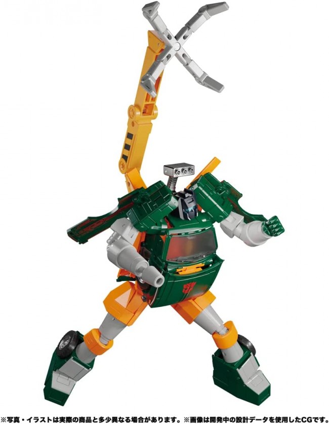 The hoist from the animated TV series "Fight! The hoist that played an active role in the TV anime "Super Robot Life Form Transformers" finally appears in the Masterpiece line! Transforms from a tow truck into a robot! You can enjoy full posability. Vehicle mode is based on the same Toyota Hilux as MP-56 Trailbreaker, with a newly built tow truck version for the cargo bed. The proportions of the robot at the time of its original release were similar to those of the Trail Breaker, as many of the same parts were used, but the proportions of the new version are closer to the anime setting as with the MP-56 Trail Breaker. Includes a replacement face, replacement hand parts, replacement anime version grille, grapple attachment, bad space robot mask, hammer, wrench, effect parts and a wide variety of accessory parts! The set also comes with a hammer, wrench, effect parts, and a variety of accessory parts to recreate scenes from the anime. Contents] Hoist (1), replacement face (1), replacement hand parts (1), replacement anime version grill (1), grapple attachment (1), bad space robot mask (1), hammer (1), wrench (1), effect parts (1), character card (1), instruction manual (1) instruction manual (1) (C) TOMY
