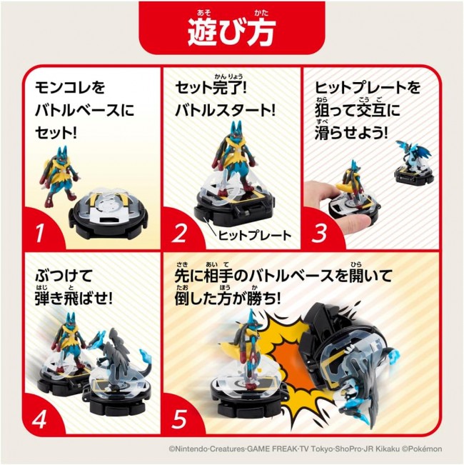 Collection Toys (PVC Figure/Finished Product) Battlese by MONCOLE! Hit it, pop it, and send it flying! Who will win? How to play “BattleZE (1) Set your favorite Pokemon (Mon Colle) in the Battle Base! (1) Set your favorite Pokemon (Mon Colle) in the Battle Base! (2) When the set is complete, the battle begins! (3) Aim at the hit plate and slide it alternately! (4) Hit it and send it flying. (5) Open the other player's Battle Base first! (5) The first Pokemon to open and knock down the opponent's Battle Base wins! Set Contents Battle Base (Hyper Ball) x 2 Mon Colle (Mega Lizardon X) x 1 Mon Colle (Mega Lizardon X) x 1 Other than the included Mon Colle, MS series Mon Colle (sold separately) can also be set. Depending on the shape of the Mon Colle, some may not be usable. Package size: W280 x H175 x D70mm Ages: 4 years old and up Contents Battle Base (Hyper Ball) (2) Mon Colle (Mega Lizardon X) (1) Mon Colle (Mega Lizardon X) (1) (C)Nintendo, Creatures, GAME FREAK, TV Tokyo, ShoPro, JR Kikaku (C)Pokemon (From Takara Tomy Mall website)
