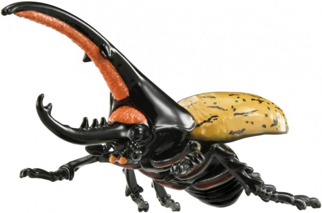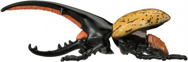 The “Hercules Monarch Beetle” is now available in the Ania AL series! AL-17 Hercules Monarch Beetle” is larger in size than the insects in the AS series, measuring 14.4 cm in length. The horns on its head, chest, and abdomen are movable. In addition, the wings open to recreate a flight pose for fun. Two illustrated cards (one in Japanese, one in English) are included. Set includes: Figure (1), illustrated book card (Japanese) (1), illustrated book card (English) (1)