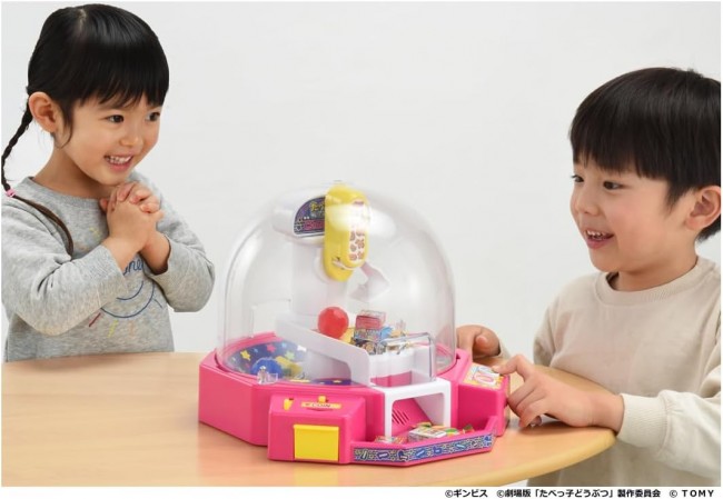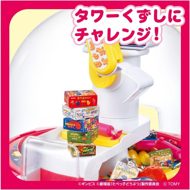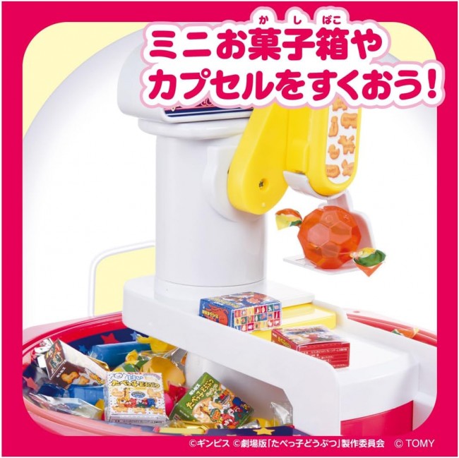 Unlimited Crane Game Play at Home! Crane game of TABEKOKO DOBUTSU THE MOVIE! Play as many crane games as you want at home! A melody plays when you insert coins. Two buttons operate the crane! Scoop capsules and mini candy boxes with the crane and drop them on the moving slide table! You can also play with candy from home! Infinite challenge mode allows you to play even without coins! ◆Switchable voice between Japanese and English. ◆Coins, bonus capsules and mini candy box sheet are included. No candy is included. Set Contents】Body(1),coins(10),Bonus capsules (1 each of red and blue)(2),label(1),mini candy box sheet(1) (C) GINBIS (C) “TABEKO DOBUTSU THE MOVIE” Production Committee (C) TOMY Uses 3 AAA alkaline batteries (Batteries sold separately.) *Please use alkaline batteries. *To prevent accidental ingestion, a “screw-on” battery case lid is used.