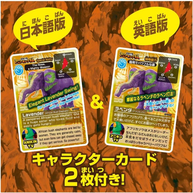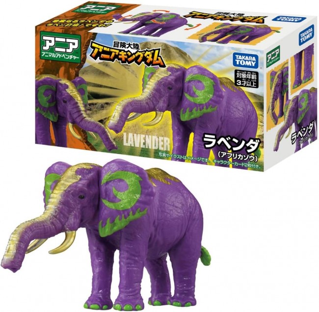 From “Adventure Continent: Ania Kingdom - King Gold Mountain Edition,” the single-item figure of “Lavender (African Elephant)” is now available! Lavender (African Elephant) features movable trunk, neck, ears, and tail. The trunk can be freely raised and lowered. Character Introduction: An African elephant who is a big eater and a lady. She loves eating and has a huge appetite, but she gets hungry again quickly. Her special move is the Lavender's Lavender Strike! 【Set Contents】Figure (1), Character Card (Japanese) (1), Character Card (English) (1) (C) TOMY