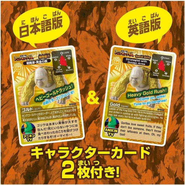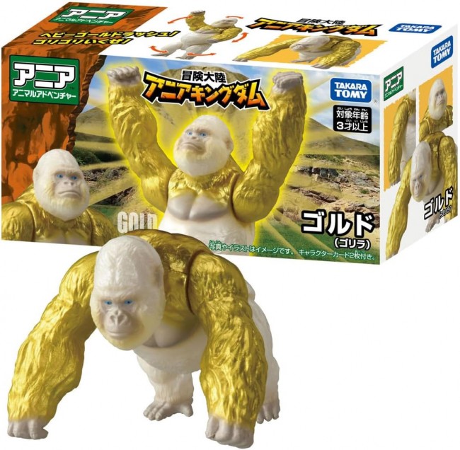 From “Adventure Continent: Ania Kingdom - King Gold Mountain Edition,” the single-item figure of “Gordo (Gorilla)” is now available! Gordo (Gorilla) features movable neck, arms, and legs. You can switch him from a four-legged stance to standing upright on two legs. Recreate scenes from the anime or Ania Fights and play! Character Introduction: The golden gorilla guarding the summit of King Gold Mountain. Leader of the King Gold Trio. A strategist and highly intelligent. His special move is Heavy Gold Rush! He hurls rocks at you! 【Set Contents】Figure (1), Character Card (Japanese) (1), Character Card (English) (1) (C) TOMY