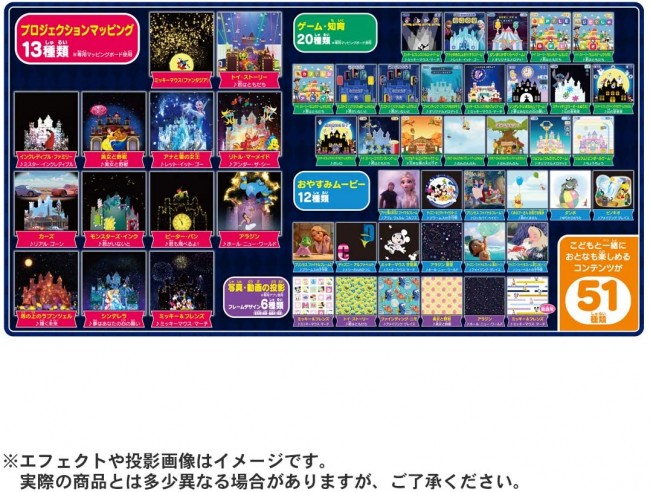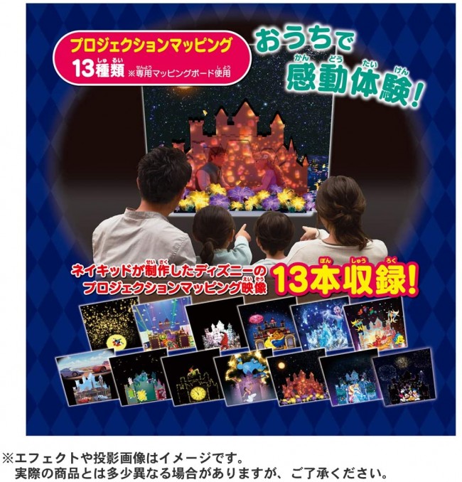 You can enjoy Disney video and music projection mapping movies using a dedicated mapping board. (Projection size: about 80 cm x about 80 cm)