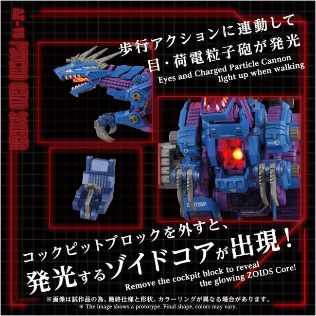 Plastic SF/Anime Character Assembly Kit ADVANCED - It represents a step toward further evolution, the development of common sense. The pinnacle brand embodying the ultimate form of moving kits, incorporating “reconstruction,” “refinement,” and “honing” based on themes set for each Zoid. 1/72 scale assembly kit. Powered by an electric unit, switching it on enables dinosaur-like, powerful walking. Manually recreates the transformation into the charged particle cannon firing form, a signature feature from the anime series. Eyes, charged particle cannon, and Zoids Core illuminate with LEDs. Includes 1/72 scale anime character figures of Liese and an original soldier, both cockpit-compatible, plus an Organoid Specular (all figures unpainted). Head, back, and leg armaments recreated with newly sculpted parts. Product Dimensions (mm) W 100.00 H 180.00 D 320.00 Set Contents Complete Runners (1), Complete Parts (1), Power Unit (1), Complete Pilot Figures (1), Label (1), Instruction Manual (1), Batteries Required Requires 2 AA alkaline batteries (batteries sold separately). *To prevent accidental ingestion, the battery compartment lid uses a screw-on design. (C) TOMY (C)ShoPro