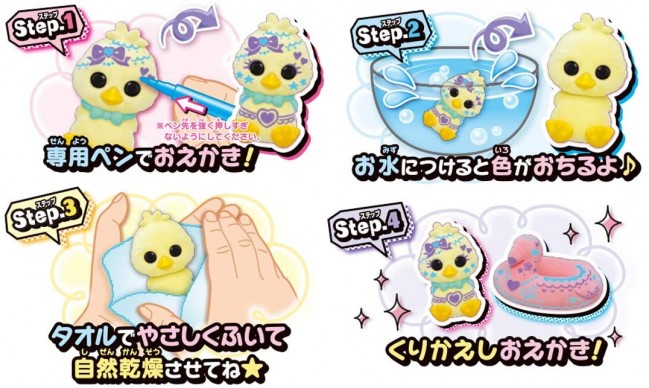 It is a product that you can play floating in the water with the popular chicks and flamingos.