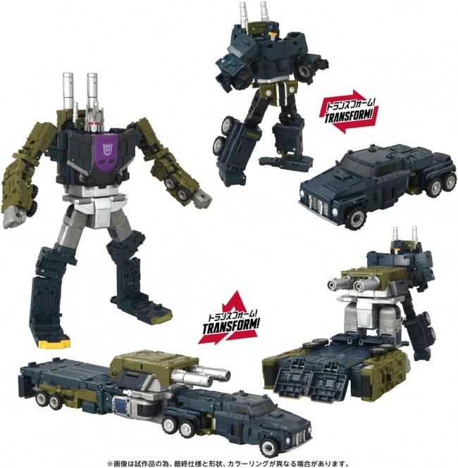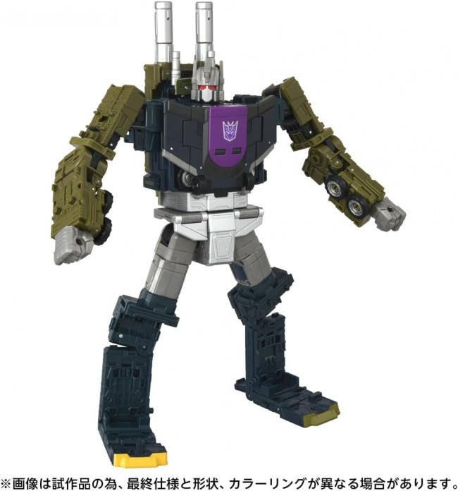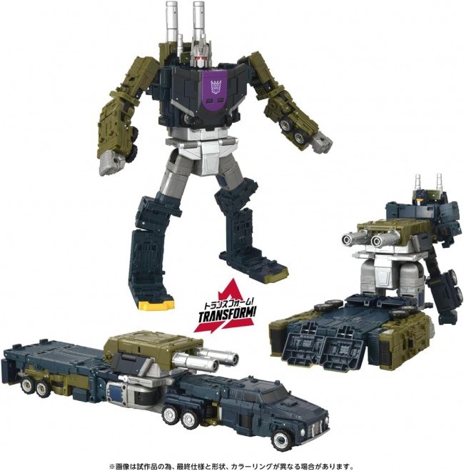 Action Figures (Anime/Sci-Fi Characters) From “Generations,” which produces merchandise based on Transformers anime/comics, comes the “Age of the Primes” line! The series centers on the “13 Primes,” the originators of the Transformers, bringing legendary Primes rarely seen in merchandise before. Onslaught is the leader of the Decepticon assault unit Combatticons, transforming into a combat vehicle. He is the offensive strategist who transforms into a combat trailer. Additionally, combining Onslaught with five other Combatticons (sold separately except for AOTP-34 Onslaught) forms the giant soldier Bruticus (Onslaught combines into the body). Furthermore, Onslaught's trailer section transforms into a massive artillery mode, with its deck capable of carrying fellow Combatticons. Contents Onslaught main body (1), Trailer main body (1), Artillery parts (1), Turret parts (2), Instruction manual (1) (C) TOMY