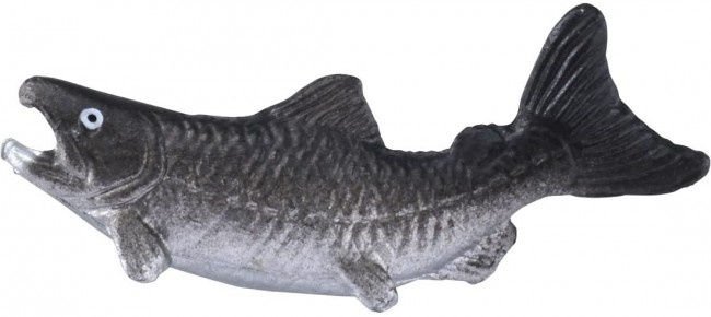 The brown bear has a movable neck. The included salmon can be added to your mouth.