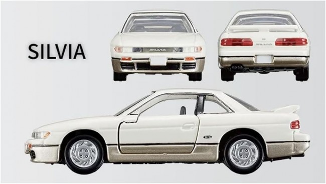 Nissan's popular sports cars arrive in a 3-car set! (Scale Action) ・SILVIA (1/62 scale, suspension, left/right doors open) ・180SX (1/62 scale, left/right doors open, retractable lights move) ・SILEIGHTY (1/62 scale, suspension, left/right doors open) 【Set Contents】SILVIA(1),180SX(1),SILEIGHTY(1) (C) TOMY