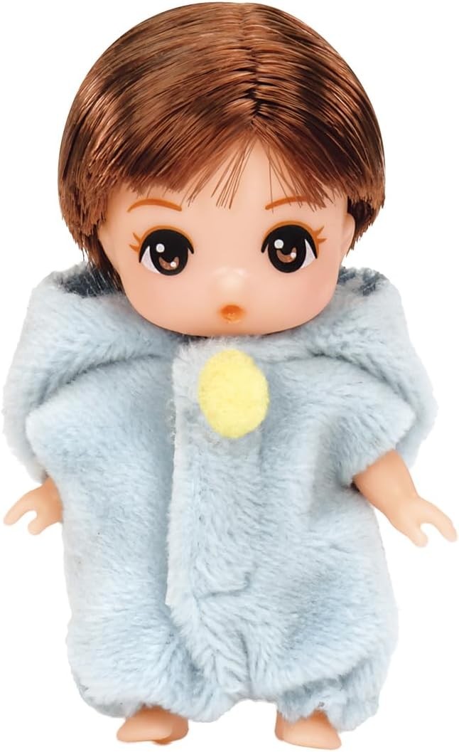 Rika-chan's little brother “Gen-kun” in cute blue cat baby clothes. GEN-kun is wearing blue baby clothes with cat ears. She comes with a diaper for changing, a stylus, and a baby bottle. Set includes] Doll (in dress) (1), Diaper (1), Sty (1), Feeding bottle (1) (C) TOMY
