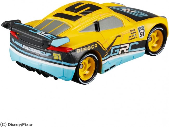 Cars' new theme “GRC (Global Racers Cup)” arrives in Cars Tomica! Cruise Ramirez debuts with a fresh new design. Featuring a vibrant yellow base with black and blue GRC logos for a sporty look. The GRC logo also appears on the rear wing, creating an authentic racing feel. (C) Disney/Pixar