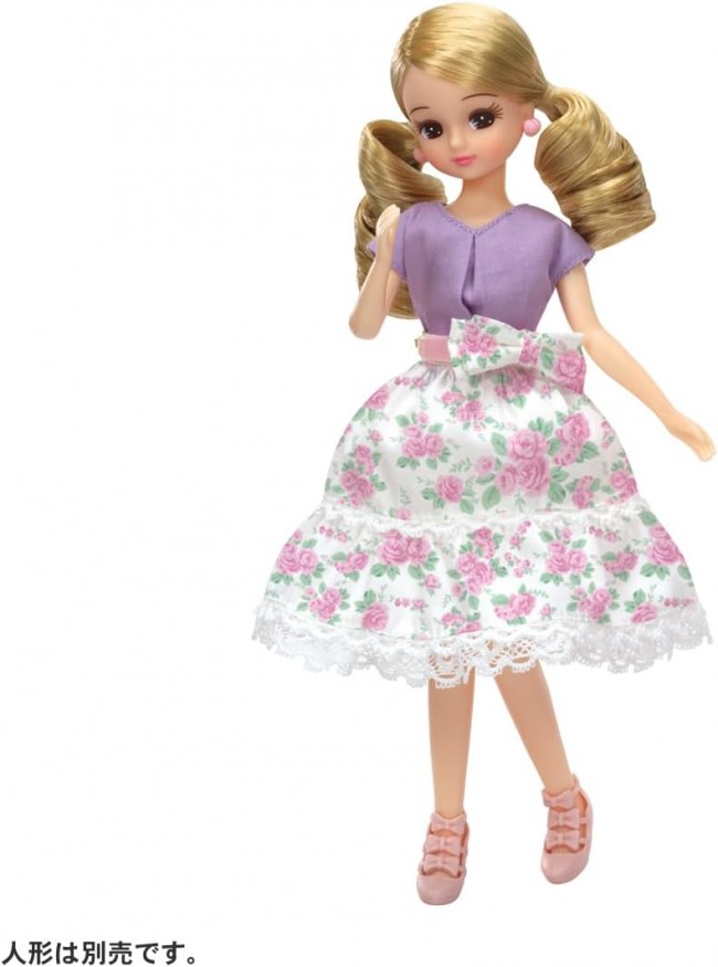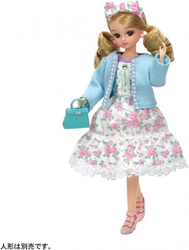 This real-close dress set coordinates well with both adults and children. The cardigan features pearls, a simple top with tucks at the chest, and a romantic floral skirt that can be worn with a bustier for a one-piece look. In addition to the kutsu and bag, earrings and a catsuit with ribbon are included. Set includes: Top (1), bustier (1), skirt (1), outerwear (1), bag (1), catsuit (1), earrings (1), shoes (1) (C) TOMY