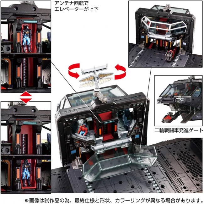 Action Figures (Anime/Science Fiction Characters) Tactical Grander” - Tactical Fortress Super Heavy Machines The “Tactical Grander,” a mobile fortress super-heavy machine that supports combat operations using tactical mover aircraft as its mainstay, makes its debut. The trailer-type body, consisting of a cockpit and container, is equipped with a variety of mechanisms that evoke various battle situations and expand the imagination. Includes two miniature action figures , a vehicle for work inside the container, and a two-wheeled combat vehicle. Contents Cockpit unit (1), container (1), radar parts A (1), radar parts B (1), diaclone crew (2), vehicle (1), two-wheeled fighting vehicle (1), connecting parts (2), runner parts (2), stickers (1), steel sheet (1), brochure (1), instruction manual (1) (C) TOMY