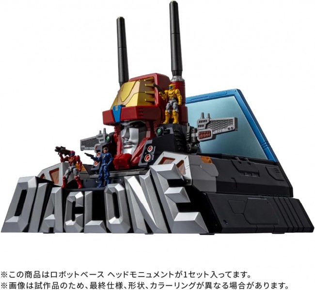 Action Figures (Anime/SF Characters) 10th anniversary of the launch of the “Diaclone” reboot project! Anniversary items now available! A monument reminiscent of the “Diaclone” logo design is now available as an anniversary item. Equipped with a light-gathering and light-emitting mechanism. Three Diaclone soldiers/Ver. 2.0 are included. The soldiers are equipped with newly designed weapons. A steel sheet is also included, and the crew members can stand stably on their own thanks to tiny neodymium magnets embedded in the soles of their feet. (C) TOMY *The images are of prototypes, so the final specifications, shape, and coloring may differ.