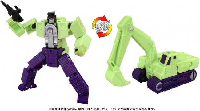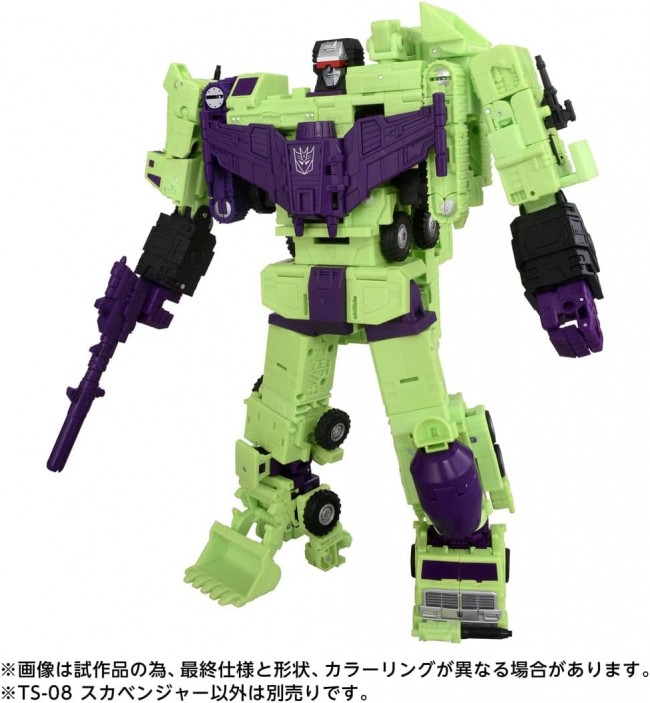 Action Figures (Anime/SF Characters) Popular characters from past movies are making their debut in the latest designs! This series is perfect for collectors who want to recreate the world of the movies. Scavenger is a mining soldier from the Decepticons' land forces, the Constructicons, who transforms into a hydraulic excavator. Additionally, by combining Scavenger with the other five Constructicons (TS-08 Scavenger is sold separately), you can assemble the giant soldier Devastator, standing approximately 340mm tall (Scavenger combines with the right arm). (C) TOMY