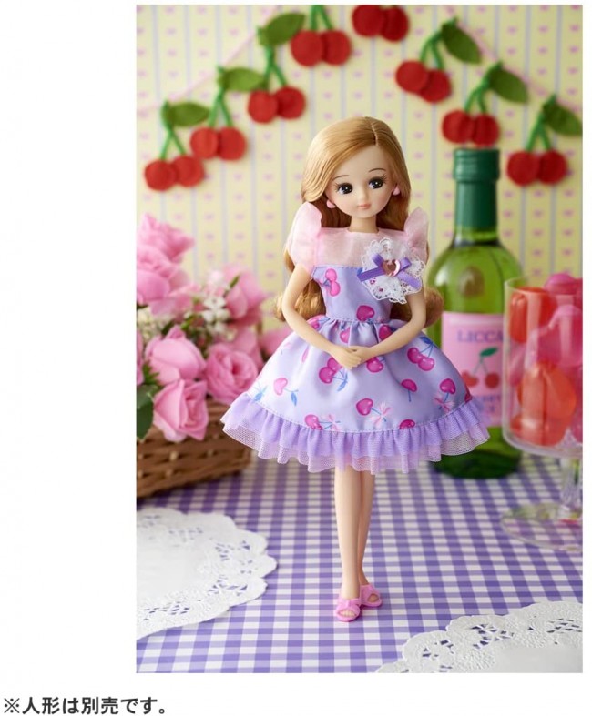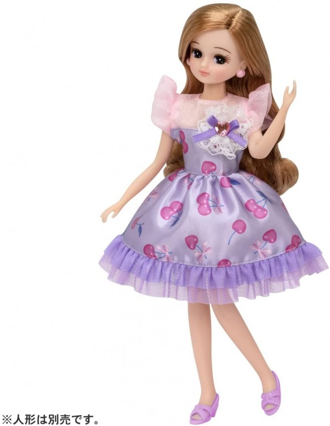 A cute dress with a cherry pattern ♪ A cherry-patterned dress with a cute heart ribbon on the chest. Comes with a pair of pink shoes. [Set contents] Dress (1), shoes (1) * Dolls are sold separately. (c) TOMY