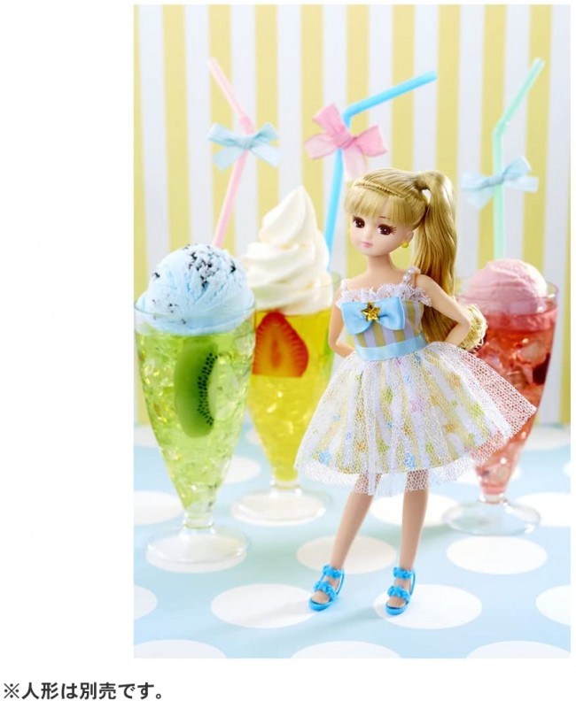 A pop colorful dress with a star point ☆ A colorful star pattern and lemon yellow are pop dresses on a large ribbon on the chest. Comes with a pair of light blue shoes. [Set contents] Dress (1), shoes (1) * Dolls are sold separately. (c) TOMY