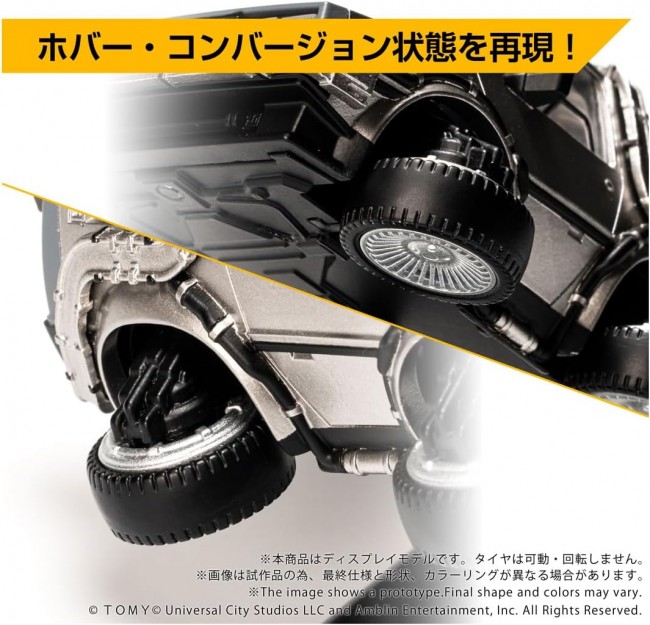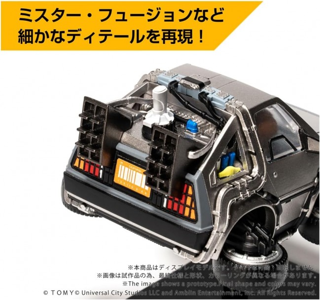 Collection Toy (Riding Car / Ready-to-Display) Cute and Cool! Deformed Display Model “Q VILLAGE” Series Rooted in “Choro-Q,” this hobby series proposes a cute and cool world. Ready-to-display model featuring a deformed car and minifigure set. From the movie “Back to the Future (Part 2)”, this set includes the time machine, Doc, and Marty (with cap). Recreates the hover conversion state! Remove the body and place the minifigures inside the time machine. Enjoy imagining scenes and displaying them. Includes a dedicated stand. *Tires are not movable or rotatable. *Does not have a pull-back function. Contents Time Machine Body (1), Stand (Base/Poles A/B/C) (1), Minifigure Doc (1), Minifigure Marty (with cap) (1) (C) Universal City Studios LLC and Amblin Entertainment, Inc. All Rights Reserved. (C) TOMY