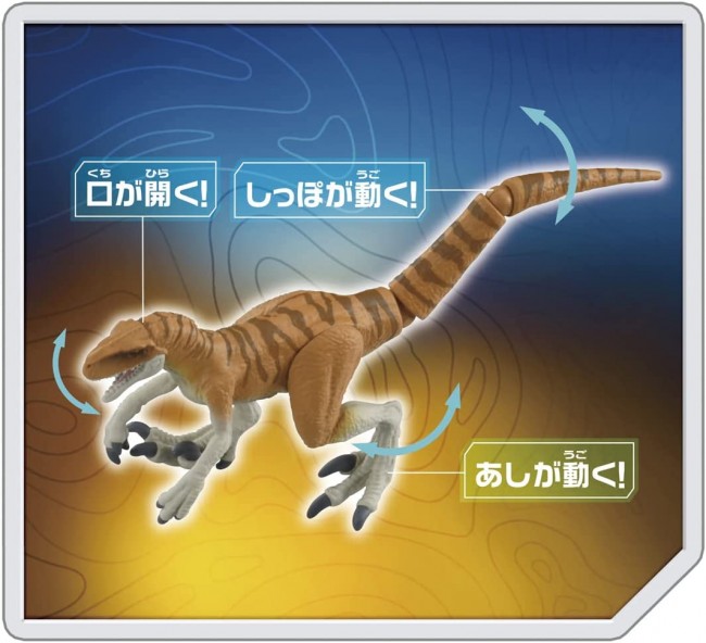An "Atrokiraptor (Tiger)" dinosaur from the movie appears in the Ania "Jurassic World" series! Atrokiraptor (Tiger) has a movable mouth, legs and tail. Ania" is a series of palm-sized gimmick animal figures that can be moved and played with. This product can be enjoyed as a "3D animal picture book" that stimulates children's intellectual curiosity to learn about the characteristics and types of animals. The figures are designed with movable gimmicks, realistic paint and detailing, and are palm-sized for easy play. Set Contents] Figure (1) (c) Universal City Studios LLC and Amblin Entertainment, Inc.