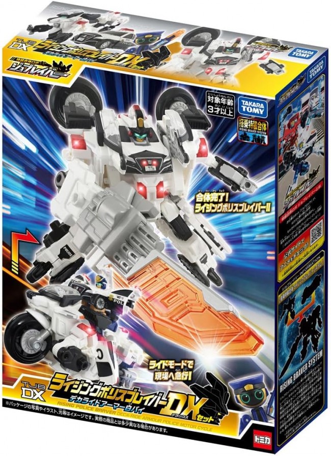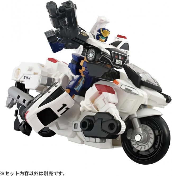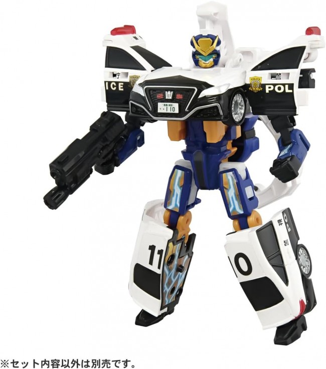 The new Police Braver and new vehicle ‘Deka Ride Armor White Bike’ are now available as a set from the Special Combination Robot Jobreaver! This set completes the Rising Police Braver! The Armor Vehicle “Toyota Crown Patrol Car” combines with the Police Jobroid to become the police robot ‘Police Braver Toyota Crown Patrol Car’! Then, Police Braver combines with the ‘Deca Ride Armor White Bike’ to become the police robot ‘Rising Police Braver Deca Ride Armor White Bike Toyota Crown Patrol Car’! Combine with Job Braver just like in the anime! Protect the city together with other Job Bravers (sold separately)! ・Deka Ride Armor White Bike can transform from Buddy Mode to Ride Mode! ・The included GJ Deka Arms can mode-change into “K-0 Saber,” “K-N10 Revolver,” and “Good Job”! 【Set Contents】Armor Vehicle (Toyota Crown Patrol Car) Upper Body Part (1), Armor Vehicle (Toyota Crown Patrol Car) Lower Body Part (Right) (1), Armor Vehicle (Toyota Crown Patrol Car) Lower Body Part (Left) (1), Police Jobroid (1), Handcuff-Type Weapon (1), Gun-Type Weapon (1), Decalide Armor White Bike Front Wheel Part (Right) (1), Decalide Armor White Bike Front Wheel Part (Left) (1), Decalide Armor White Bike Upper Body Part (Right) (1), Decalide Armor White Bike Upper Body Part (Left) (1), Decalide Armor White Bike Leg Part (Right) (1), Decalide Armor White Bike Leg Parts (Left) (1), Decalide Armor White Bike Torso (1), Decalide Armor White Bike Weapon (1), Decalide Armor White Bike Visor (1), Decalide Armor White Bike Handlebar (Right) (1), Decalide Armor White Bike Handlebar (Left) (1), Sticker (1), Instruction Manual (1) (C) TOMY