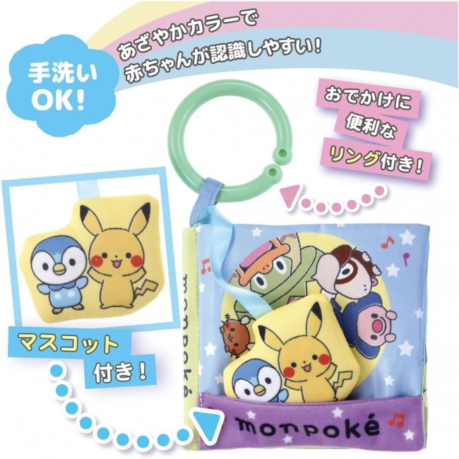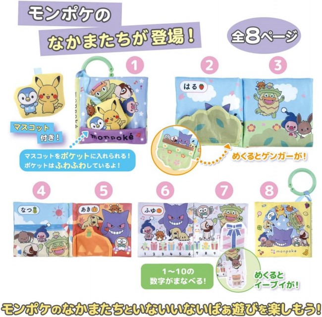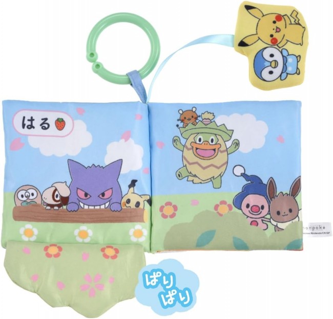 A cloth picture book packed with finger plays, featuring Pikachu and Pochama mascots, so your little one can enjoy peek-a-boo games with their Pokemon friends. 【Recommended Age】Around 6 months and up ・Features 10 different Pokemon friends ・Includes Pikachu and Pochama mascots ・Pocket included to store the mascots ・Convenient ring for taking on outings ・Enjoy each season?spring, summer, fall, winter?on separate pages ・Learn numbers 1 to 10 ・Machine washable 【Set Contents】Ring (1), Main Book (1) (C)Pokemon. (C)Nintendo/Creatures Inc./GAME FREAK inc.