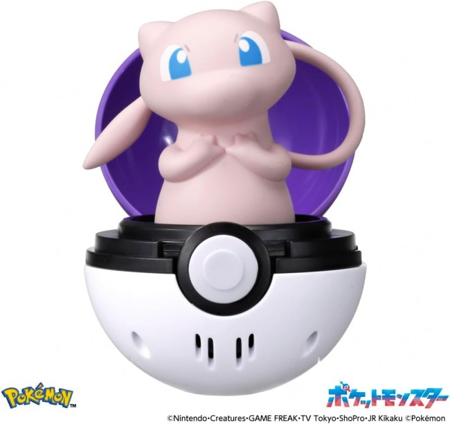Finished Toy Pop it out and poke it! Play with Mew! Every time you open the Master Ball, Mew pops right out! Poke it, and Mew will talk to you! Every time you open it or poke it, you can enjoy Mew's various reactions! Poke it repeatedly to hear a special reaction! ※It will enter sleep mode if no action is taken for about 10 minutes. Size when open: Height approx. 10.5cm, Width approx. 8.5cm, Depth approx. 13.3cm Package Size: W129×H129×D129mm Recommended Age: 4 years and up Product Contents Main Unit (1) (C)Nintendo・Creatures・GAME FREAK・TV Tokyo・ShoPro・JR Kikaku (C)Pokemon (From the Takara Tomy Mall website)
